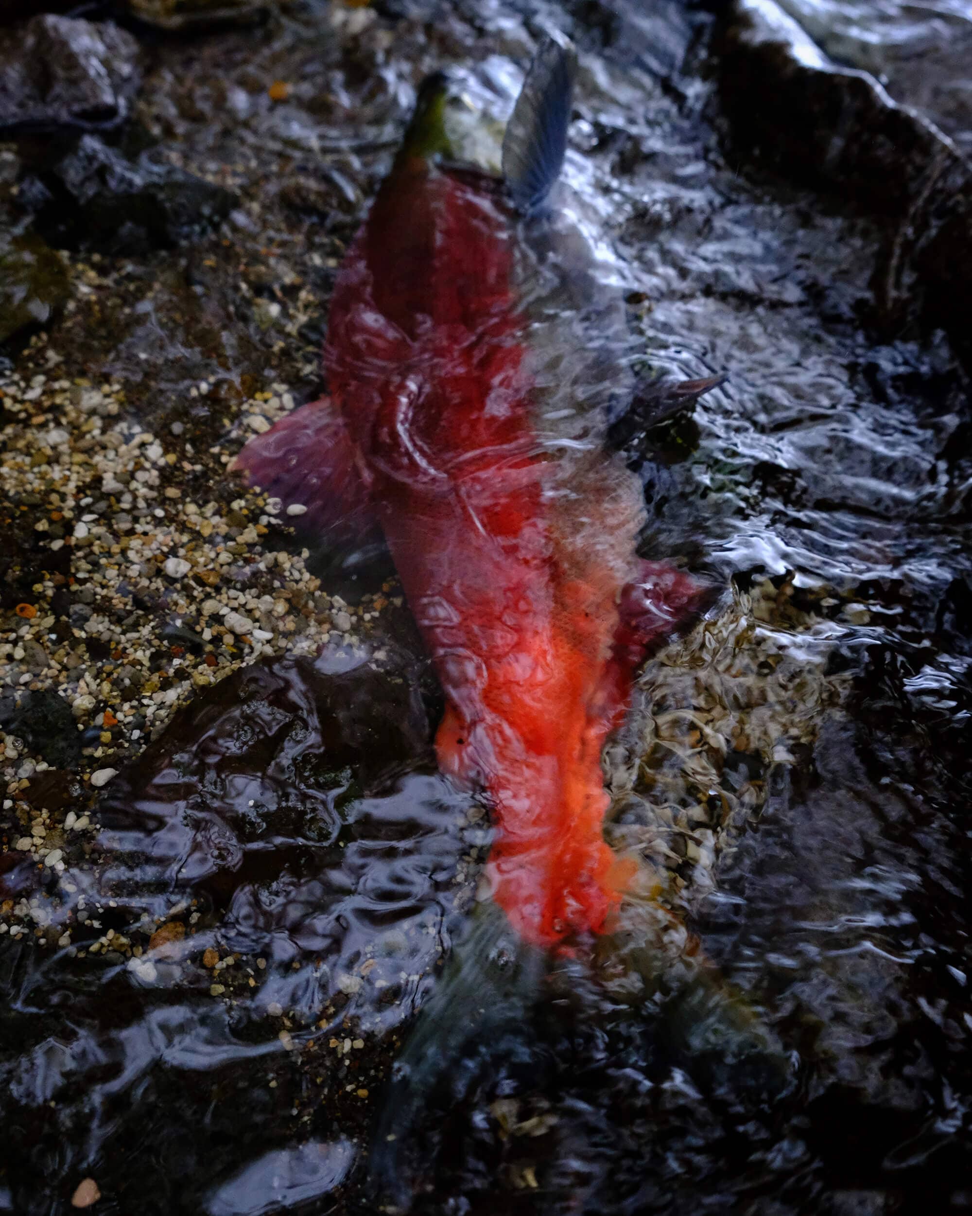 10年程前までは秋になると菖蒲ヶ浜キャンプ場付近を流れる湯川や地獄沢(中禅寺湖に流れ込む湯川の支流)に大量のヒメマスが遡上する姿が見られました。ヒメマスは水の中の紅葉とも揶揄される程に真っ赤に染まり、屈斜路湖や十和田湖など、日本各地で秋の風物詩になっています。しかしここ数年、中禅寺湖ではその数が激減し、毎年漁協が遡上したヒメマスから採卵し孵化させる地獄沢では、数年前に確認出来た遡上数が数匹だった事もありました。